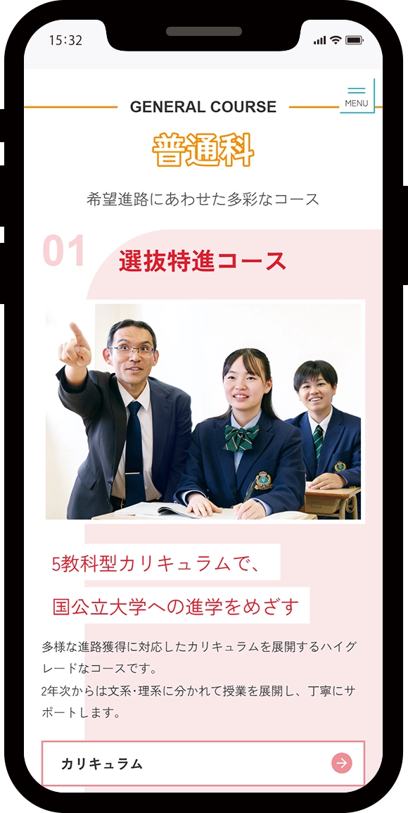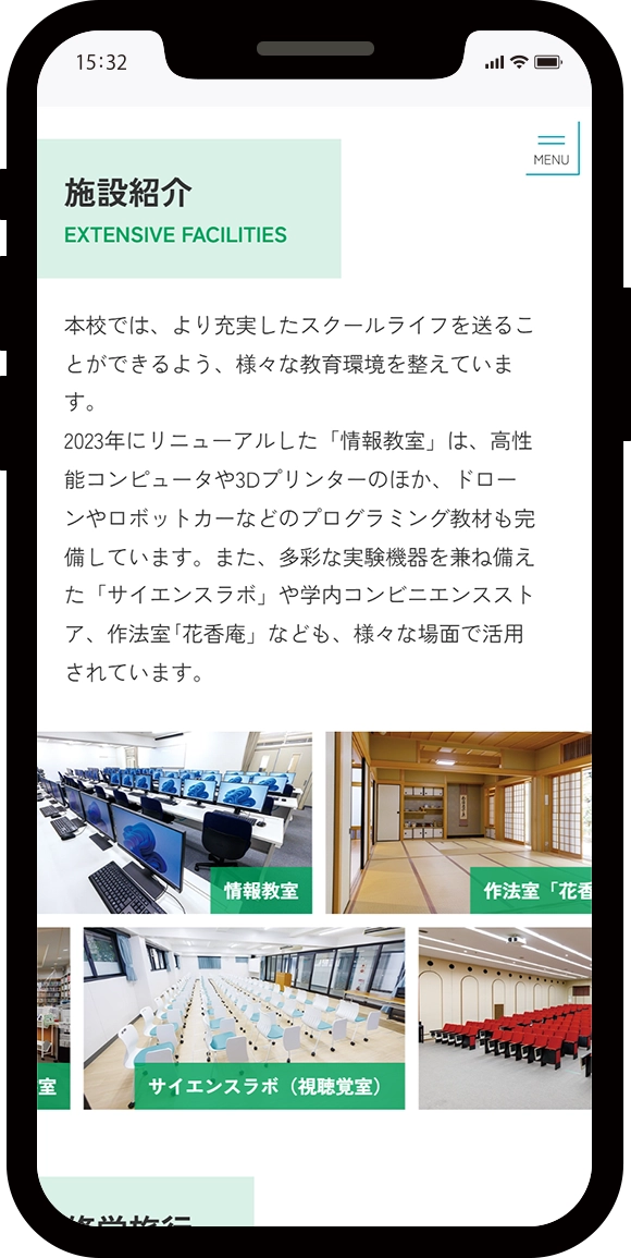 学校の雰囲気を伝えるため写真を多く使い、カラフルだけどうるさすぎないデザインとしております。